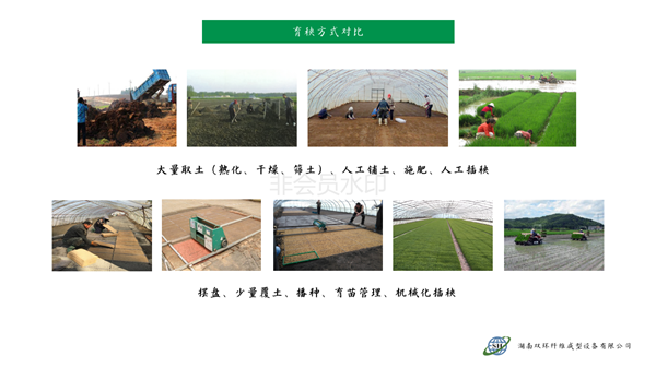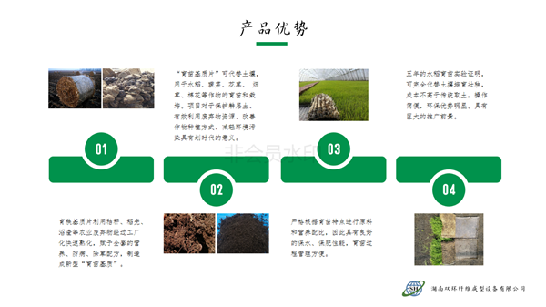 本產(chǎn)品針對水稻旱育苗大量挖取耕層土,耕層破壞嚴峻的現(xiàn)實,利用秸稈、蘑菇菌糠、稻殼、沼渣等農(nóng)林廢棄物經(jīng)過工廠化快速熟化,賦予全套的營養(yǎng)、防病、除草配方,制造成新型的嶄新的“無土育苗基質(zhì)”。